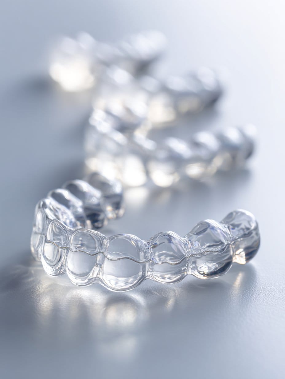 Aligner sind transparente, herausnehmbare Zahnschienen aus biokompatiblem Kunststoff. Sie üben sanften Druck auf die Zähne aus und bewegen sie Schritt für Schritt in die gewünschte Position – ganz ohne Drähte oder Brackets. Die Schienen werden individuell gefertigt und regelmäßig gewechselt, bis das Ziel erreicht ist.
